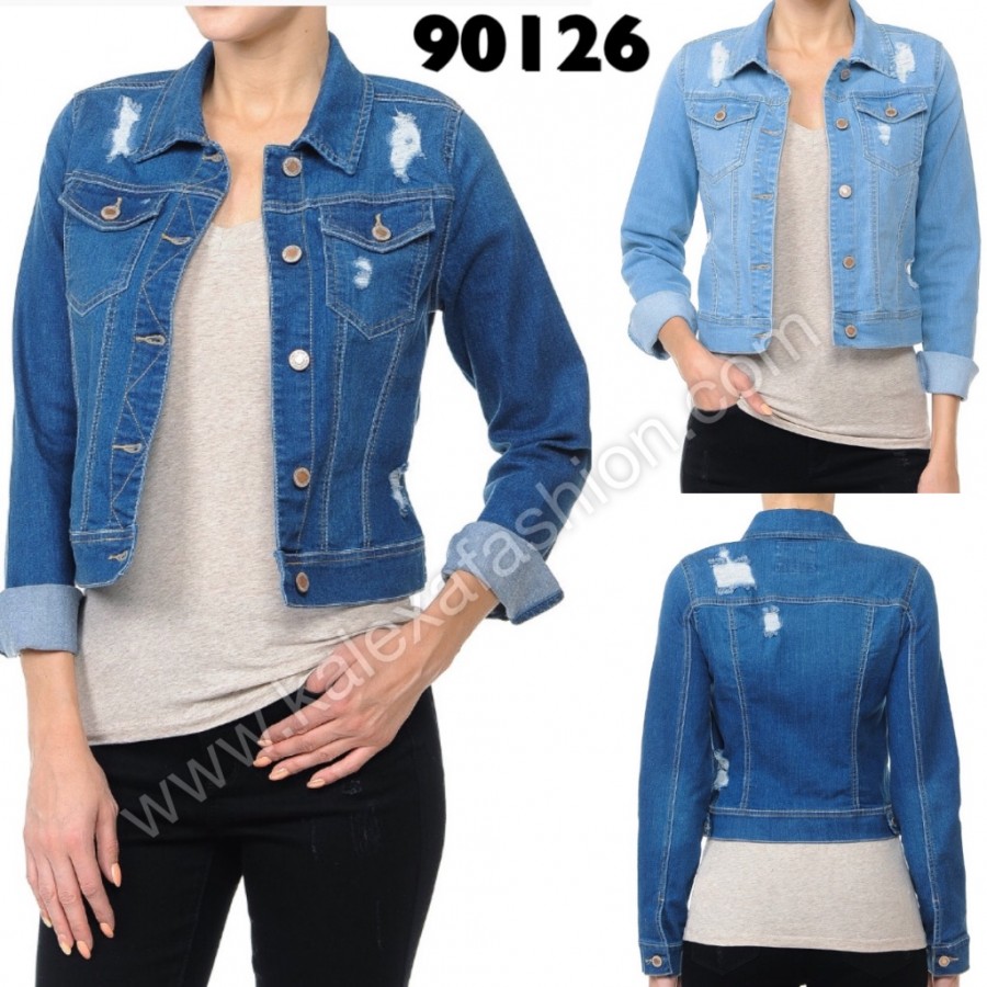 Chamarra de mezclilla de moda con destrucción