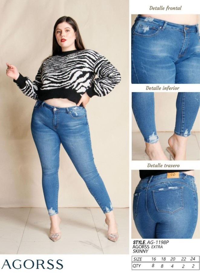 Pantalón Agorss de mezclilla de moda corte Skinny Talla Extra